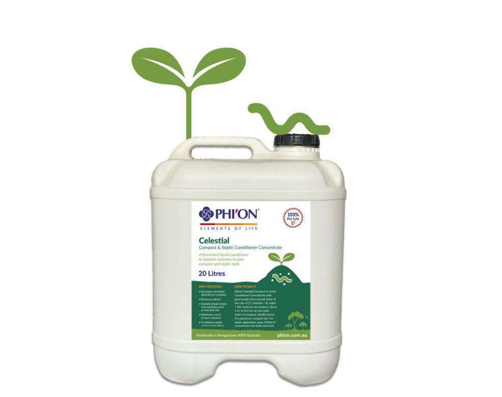 How to use it: Dilute Celestial Compost & Septic Conditioner Concentrate with good quality (structured) water at the rate of 1L Celestial + 9L water = 10L ready-to-use product. Spray 1.5L of the mix on one cubic metre of compost, ideally before it is placed on compost site. For septic application, pour 500ml into toilet and flush.