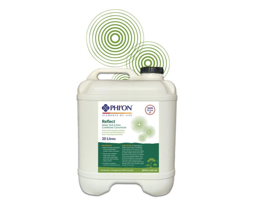 How to use it: Dilute Reflect Water Tank & Dam Conditioner Concentrate at the rate of 1:10 water and spray around the edges of water bodies where the water meets the soil, vessel or container. Do not pour Reflect Water Tank & Dam Conditioner Concentrate into open water systems. Best times to spray include before rain, during cloud cover and the cooler months of the year.