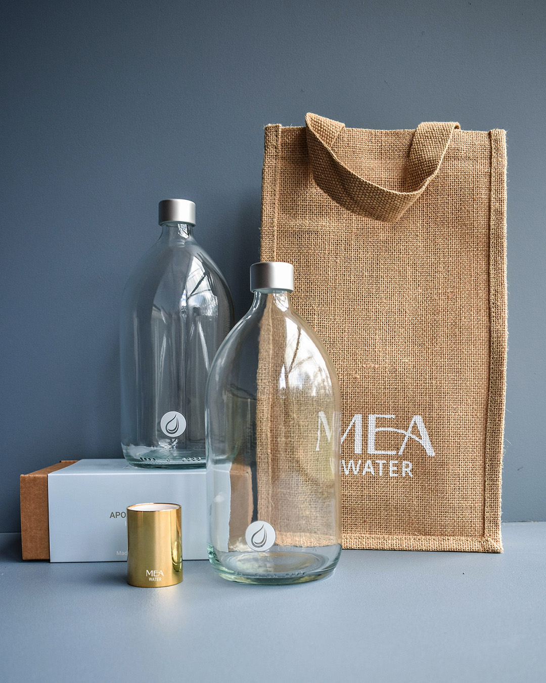 Apollo Gold Bottle Top + 2 Glass Bottles in Jute Carry Bag (portable)